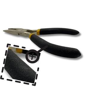 Alicate bico longo reto 4,5 mola meia cana niquelado aço carbono 125mm cabo borracha termoplástica - mini alicate de bico reto 4,5 polegadas - comprimento do alicate: 125mm - material do cabo: polipropileno com borracha termoplástica - material da cabeça: aço carbono niquelado - tamanho da abertura: 1,5cm - - suporta fio de aço de 1,0mm - diferencial do produto: firme