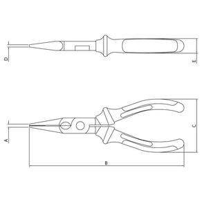 O Alicate Bico Meia Cana 6 Polegadas Isolado Tramontina com Empunhadura Dupla Injeção leva mais praticidade e funcionalidade para a construção civil e pequenos reparos. Ideal para pegar objetos e mantê-los firmes, possui espaço para corte de arames e espaço serrilhado. É uma ferramenta que auxilia em diferentes momentos e é muito usada nos serviços elétricos e de telefonia, devido ao seu bico longo. Indicado para uso em locais com baixas tensões de até 1.000 V em corrente alternada. Além disso, possui corpo forjado em aço especial e temperado, que garante mais resistência e durabilidade à peça. Orientações Corpo forjado em aço especial e temperado. O aço carbono especial empregado na fabricação do produto, aliado à têmpera especial no gume de corte garantem maior resistência.Acabamento fosfatizado.Cabeça e articulação lixadas.Têmpera especial no gume de corte e mandíbulas.Produto em conformidade com a NBR 9699 e NR10. Isolação 1.000 V para uso em locais com baixas tensões de até 1.000 V em corrente alternada.Articulação suave para facilitar o uso.Os cabos possuem um formato ergonômico para aumentar o conforto.As ferramentas são produzidas e testadas conforme normas específicas. Observações Use óculos, luvas e outros equipamentos de proteção de acordo com a tarefa a ser executada. Observe as indicações de uso de cada tipo de alicate ou torquês. Nunca utilize um alicate ou torquês para cortar arames endurecidos, a não ser que tenha sido projetado para este fim. Nunca utilize o alicate ou torquês como martelo. Ele pode trincar ou até mesmo quebrar. Nunca exponha os alicates ou torqueses ao calor excessivo. Isto pode alterar o tratamento térmico aplicado no corte e afetar o seu desempenho. Sempre posicione o corte do alicate ou torquês perpendicularmente ao eixo do arame para uma operação mais rápida e segura. Utilize alicates isolados, identificados pela marcação 1.000 V no cabo, quando for necessário trabalhar em locais com corrente elétrica. Importante: nestes casos, inspecione a integridade da isolação elétrica, e, se aparecerem trincas na isolação, suspenda o uso imediatamente.Nunca aumente o comprimento dos cabos dos alicates ou torqueses. Isto amplifica a força exercida sobre a cabeça da ferramenta podendo quebrá-la.Nunca utilize o alicate ou torquês em porcas e parafusos. Para estes trabalhos, indica-se o uso de chaves de aperto.Lubrifique periodicamente a articulação. Isto aumenta a vida útil do produto e melhora sua performance.Armazene em local limpo e seco. Características Gerais EAN13 7891114075601 DUN14 17891114075608 NCM 8203.20.10 Peso Líquido 0,1700 kg. Peso Bruto 0,1700 kg. Metragem 0,000429 m³. Dimensões Embalagem (Compr. X Larg. X Alt.) 220x 65x 30 mm. Dimensões Produto (Compr. X Larg. X Alt.) 169x 55x 18 mm. Cor 1 FFD200 Hexa Dimensão Extra A 3,5 mm. Dimensão Extra B 169,0 mm. Dimensão Extra C 55,0 mm. Dimensão Extra D 2,5 mm. Dimensão Extra E 18,0 mm.