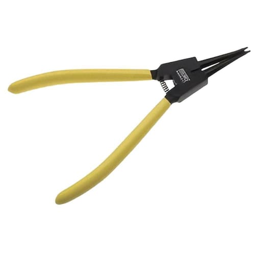 Descrição do Produto: Alicate Bico Reto Para Anéis Externos Feeling MATERIAL: - Forjado em Aço Alto Carbono. Acabamento em pintura preta. Cabo revestido em PVC. CARACTERÍSTICAS: - Sistema de mola de retorno para uso contínuo, economizando força e tempo. FUNÇÃO: - Montar e Desmontar anéis de segurança. APLICAÇÃO: - Mecânica. Imagens meramente ilustrativas