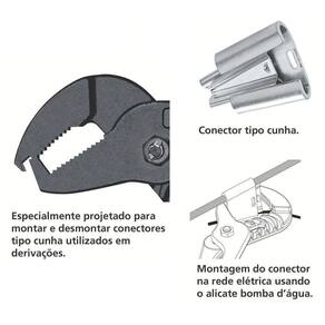 O alicate bomba-d?água é a ferramenta que não pode faltar na manutenção de redes elétricas e instalações hidráulicas, sendo também muito utilizado em serviços de mecânica. Por possuir regulagem de abertura, é uma ferramenta superversátil. A ferramenta certa para você que precisa de resistência e segurança.OrientaçõesForjado em aço cromo vanádio.