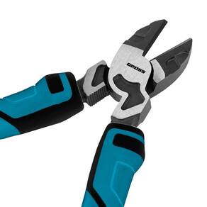 O Alicate Corte Diagonal Gross 1754855, com seu comprimento de 150 mm e sistema reforçado, é uma ferramenta indispensável para uma vasta gama de aplicações, desde trabalhos de montagem e mecânica até tarefas domésticas. Projetado para cortar fios, cabos, arames e até estruturas metálicas e plásticas, este alicate combina robustez com precisão, tornando o corte de peças e parafusos mais espessos uma tarefa simples. Fabricado em aço cromo-vanádio por forjamento, oferece alta resistência (56-62 HRC), assegurando uma longa vida útil mesmo sob uso intenso. Seu design estratégico, com dobradiça próxima às bordas de corte e sistema High leverage, proporciona uma transferência de força superior, aumentando a produtividade e exigindo menos esforço. A dimensão compacta facilita o trabalho em espaços limitados, enquanto as alças de dois componentes com revestimento antiderrapante garantem um manuseio confortável e seguro. Ideal para profissionais e entusiastas do DIY que buscam precisão, durabilidade e conforto em suas tarefas de corte.