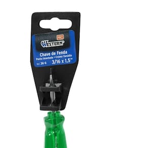 Alicate Corte Diagonal 6" Chave Fenda 3/16x1.1/2 - Western Uma ferramenta prática e essencial na sua maleta de ferramentas. com haste em Aço Vanádio e PVC. Uma chave de fenda linda e eficaz para suas necessidades! - Profissional (PRO). ? Chave com lâmina redonda para parafusos tipo fenda. ? Indicado para aperto e desaperto de parafusos com fenda. ? Ponta imantada. ? Cromo vanádio.