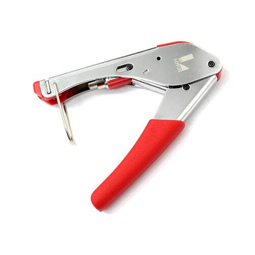 Alicate crimpador coaxial RG06 e RG59 O Alicate de Compressão é uma ferramenta robusta desenvolvida para crimpar prensar conectores RG6 e RG59, os quais são comumente utilizados na instalação de cabos em antenas e conexões de televisão a cabo. Junto ao cabo do Alicate de Compressão existe um suporte para conexão do conector e um terminal perfurado para crimpar o conector de forma rápida e confiável. A principal vantagem de utilizar o alicate de compreensão é que ocorre a anulação da probabilidade de mau contato na ligação de fios/conectores. Para maior segurança e conforto o Alicate de Compreensão possui uma mola interna de pressão que facilita o manuseio pois faz com que o operador apenas exerça força para cerrá-lo, que automaticamente ele voltará a ficar aberto. Ean: 7898526962840