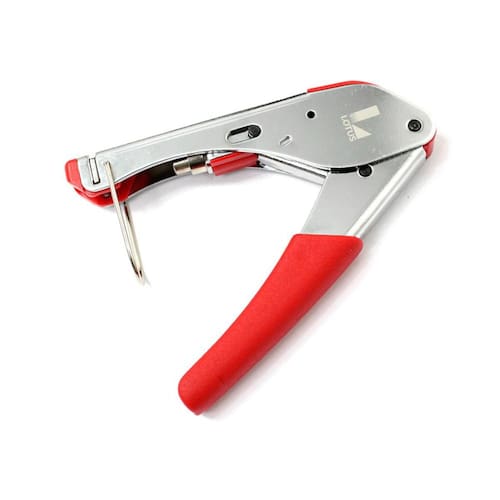 Alicate crimpador coaxial RG06 e RG59 O Alicate de Compressão é uma ferramenta robusta desenvolvida para crimpar prensar conectores RG6 e RG59, os quais são comumente utilizados na instalação de cabos em antenas e conexões de televisão a cabo. Junto ao cabo do Alicate de Compressão existe um suporte para conexão do conector e um terminal perfurado para crimpar o conector de forma rápida e confiável. A principal vantagem de utilizar o alicate de compreensão é que ocorre a anulação da probabilidade de mau contato na ligação de fios/conectores. Para maior segurança e conforto o Alicate de Compreensão possui uma mola interna de pressão que facilita o manuseio pois faz com que o operador apenas exerça força para cerrá-lo, que automaticamente ele voltará a ficar aberto. Ean: 7898526962840