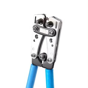 Alicate Crimpador de Terminal de 6 a 50mm é uma ferramenta projetada para garantir conexões seguras e confiáveis em uma ampla gama de aplicações. Com a capacidade de prensar entre 6 e 50mm, este alicate é o companheiro indispensável para eletricistas, instaladores de redes de comunicação, técnicos de sistemas de refrigeração e muitos outros profissionais. Sua construção robusta e mecanismo de prensagem de alta precisão garantem que os terminais e conectores sejam unidos de maneira firme e durável, reduzindo o risco de falhas e manutenção constante. Seja em instalações elétricas, montagens industriais ou projetos de telecomunicação. Este alicate o proporciona eficiência, confiabilidade e segurança, tornando-se um investimento valioso para qualquer equipe de trabalho.