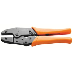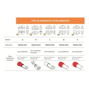 Alicate Crimpador sem Mandíbulas 9'' Tramontina PRO O alicate crimpador da Tramonrina PRO permite crimpar terminais com qualidade e rapidez. Suas mandíbulas podem ser trocadas, conferindo versatilidade ao produto. Maior resistência, conforto e segurança em suas mãos. Cabeça e articulação pintadas. Possui regulagem de pressão.Cabos com revestimento especial.Os alicates de corte são testados quanto à resistência ao desgaste do gume de corte em máquina de ensaio específica.Os alicates possuem dureza diferenciada no gume de corte e no corpo.Crimpar terminais. As ferramentas são produzidas e testadas conforme normas específicas. Cuidados com o produto Use óculos, luvas e outros equipamentos de proteção individual (EPIs) de acordo com a tarefa a ser executada. Observe as indicações de uso de cada tipo de alicate. Nunca utilize um alicate para cortar arames endurecidos, a não ser que tenha sido projetado para este fim. Nunca utilize o alicate como martelo. Ele pode trincar ou até mesmo quebrar. Nunca exponha os alicates ao calor excessivo. Isto pode alterar o tratamento térmico aplicado no corte e afetar o seu desempenho. Sempre posicione o corte do alicate perpendicularmente ao eixo do arame para uma operação mais rápida e segura. Utilize alicates isolados, identificados pela marcação 1.000 V no cabo, quando for necessário trabalhar em locais com corrente elétrica. Importante: nestes casos, inspecione a integridade da isolação elétrica, e, se aparecerem trincas na isolação, suspenda o uso imediatamente. Nunca aumente o comprimento dos cabos dos alicates. Isto amplifica a força exercida sobre a cabeça da ferramenta podendo quebrá-la. Nunca utilize o alicate em porcas e parafusos. Para estes trabalhos, indica-se o uso de chaves de aperto. Lubrifique periodicamente a articulação. Isto aumenta a vida útil do produto e melhora sua performance. Manter os alicates longe do alcance de crianças. Armazene em local limpo e seco. Garantia Garantia total contra vícios ou defeitos de fabricação.