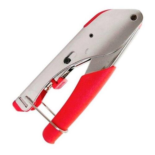 O Alicate de Compressão é uma ferramenta robusta desenvolvida para crimpar (prensar) conectores RG6 e RG59, os quais são comumente utilizados na instalação de cabos em antenas e conexões de televisão a cabo.