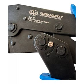 Alicate Profissional para crimpagem de terminais Automotivos 0,5 a 6mm Terminais ados: Faston macho e fêmea, superseal, econoseal, hylock, mat in lock e outros. ESPECIFICAÇÕES DE CRIMPAGEM: Cabos de 0.50 a 6mm 10 a 20 AWG 1o dente: 0,1 a 1mm 2o dente: 1 a 2,5mm 3o dente: 4 a 6mm Observação: Não acompanha terminais. Peso 0,600 kg Diferencial: Com catraca e regulagem de pressão Comprimento: 230mm Peso: 0,600Kg Material plástico: Nylon Cor do cabo do alicate: ul Material metálico: Aço Itens Inclusos: 1 Alicate crimpa terminais 1 Embalagem Blister. Marca: DM Ferramentas e equipamentos automotivos Garantia de 6 meses. (3 meses de garantia Legal contra defeito de fabricação e 3 meses de garantia concedido pela DM Ferramentas contra defeitos de fabricação) Marca: DM FERRAMENTAS