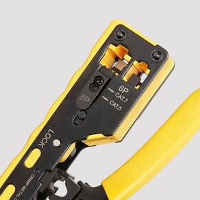 Características destacadas 1. Crimpagem através do orifício:. O design das pás da porta de crimpagem do lado traseiro é especialmente projetado para a cabeça de cristal com orifício passante, e o excesso de cabo de rede é cortado ao mesmo tempo 2. Especificação de crimpagem ajustável: use a posição do parafuso de ajuste para alterar a especificação da configuração. Ele pode ser convertido entre CAT.5/6 e CAT.7. Multifuncional e fácil de usar. 3. Braçadeira de cabeça e cauda de vidro por prensagem: adequada para cabeça de vidro blindado com braçadeira de cauda, que é bem pressionada, apertada e não é fácil de soltar. 4. Interruptor de um botão: pressione o botão quando estiver em uso para desbloquear; Quando estiver armazenado, pressione o botão de bloqueio. 5. Alça antiderrapante:. com alça fosca, projetada de acordo com a ergonomia, conforto antiderrapante, boa aderência Veja menos