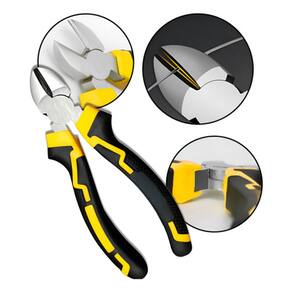 O Alicate de Corte de 6 Polegadas é a ferramenta ideal para quem busca precisão e eficiência em cortes e reparos. Com um design ergonômico e cabo emborrachado bicolor, ele proporciona conforto e firmeza durante o uso, reduzindo a fadiga nas mãos. Fabricado em aço de alta qualidade, ele é altamente resistente e durável, garantindo um desempenho superior mesmo nas tarefas mais exigentes. Este alicate é perfeito para diversos projetos, como construção civil, reformas, manutenção elétrica e trabalhos manuais. Seu acabamento polido também o torna resistente à ferrugem, assegurando que você tenha uma ferramenta confiável por muito tempo. Além disso, suas lâminas com tratamento térmico de alta frequência asseguram cortes precisos, tornando o seu trabalho mais eficiente.
