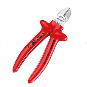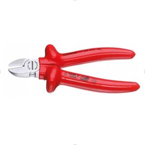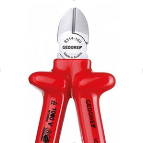 - Alicate isolado de corte diagonal modelo sueco VDE Gedore; - Utilizado para trabalhar em montagens e reparos eletroeletrônicos; - Produzido em aço vanádio e empunhadura ergonômica em polímero; - Possui acabamento niquelado, cromado e polido; - Com cabeça estreita ideal para acesso em espaços reduzidos; - Tratamento térmico total e corte temperado por indução com dureza de 63 - 65 HRC; - A geometria do corte está posicionada em diagonal ao corpo do alicate; - Indicado para corte de arame com dureza média, diâmetro máximo de 1,6 mm; - Segue as seguintes normas: DIN ISO 5749 / NBR 9699 / NR 10.