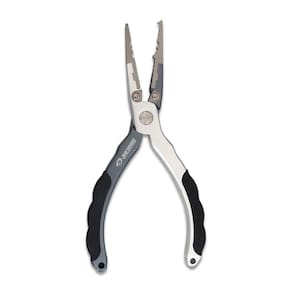 especial para cortes de multifilamentos, fluorocarbon, nylon, fios de cobre e fio de aço flexível. Ideal para abertura de split ring, remoção de anzóis, confecção de lideres, encastoados e aperto de luvas. Possui afiadas e resistentes lâminas de corte. Anatômico resistente e extremamente leve. Indispensável em uma pescaria. Especificações: