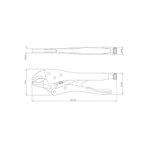 Mordentes forjados em aço especial e temperados. O aço carbono especial empregado na fabricação dos mordentes, aliado à têmpera garantem maior resistência. Corpo formado por chapas conformadas. Acabamento cromado. Abertura regulável. Possui alavanca para destravar. Mordente curvo. Sistema de rebites especialmente projetado para aumentar a resistência do produto. Formato ergonômico para maior conforto. As ferramentas são produzidas e testadas conforme normas específicas.