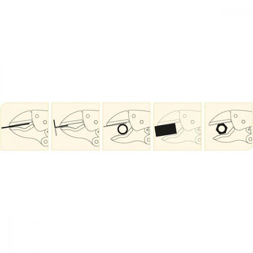 Mordentes forjados em aço especial e temperados. O aço carbono especial empregado na fabricação dos mordentes, aliado à têmpera garantem maior resistência.Corpo formado por chapas conformadas.Acabamento cromado.Abertura regulável.Possui alavanca para destravar.Mordentes com perfil triangular.Sistema de rebites especialmente projetado para aumentar a resistência do produto.Formato ergonômico para maior conforto.As ferramentas são produzidas e testadas conforme normas específicas. Cor: Única