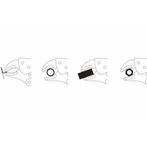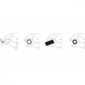 Mordentes forjados em aço cromo vanádio. Corpo formado por chapas conformadas.Acabamento cromado.Abertura regulável.Possui alavanca para destravar.Possui mordentes com perfil curvo.Os alicates de corte são testados quanto à resistência ao desgaste do gume de corte em máquina de ensaio específica.Os alicates possuem dureza diferenciada no gume de corte e no corpo.Segurar, puxar e prender peças firmemente.Em trabalhos leves pode ser usado como uma prensa.As ferramentas são produzidas e testadas conforme normas específicas.