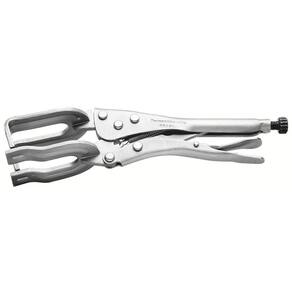 Prende, trava e não solta! Esta é a principal característica do alicate de pressão da Tramontina PRO que auxilia na fixação de peças que serão cortadas, lixadas ou soldadas, por exemplo. A ferramenta certa para você que precisa de resistência e segurança. Orientações Mordentes reforçados em aço.Corpo formado por chapas conformadas.Acabamento cromado.Abertura regulável.Possui alavanca para destravar.Os alicates de corte são testados quanto à resistência ao desgaste do gume de corte em máquina de ensaio específica.Os alicates possuem dureza diferenciada no gume de corte e no corpo.Utilizado para prender chapas lisas ou com bordas dobradas, tiras e pequenas cantoneiras.As ferramentas são produzidas e testadas conforme normas específicas. Características Gerais EAN13 7891114024142 DUN14 17891114024149 NCM 8203.20.10 Peso Líquido 0,8700 kg. Peso Bruto 0,8700 kg. Metragem 0,001792 m³. Dimensões Embalagem (Compr. X Larg. X Alt.) 320x 80x 70 mm. Dimensões Produto (Compr. X Larg. X Alt.) 265x 67x 65 mm. Dimensão Extra A 51,0 mm. Dimensão Extra B 265,0 mm. Dimensão Extra C 67,0 mm. Dimensão Extra D 19,0 mm. Dimensão Extra E 65,0 mm. Observações Use óculos, luvas e outros equipamentos de proteção individual (EPIs) de acordo com a tarefa a ser executada. Observe as indicações de uso de cada tipo de alicate. Nunca utilize um alicate para cortar arames endurecidos, a não ser que tenha sido projetado para este fim. Nunca utilize o alicate como martelo. Ele pode trincar ou até mesmo quebrar. Nunca exponha os alicates ao calor excessivo. Isto pode alterar o tratamento térmico aplicado no corte e afetar o seu desempenho. Sempre posicione o corte do alicate perpendicularmente ao eixo do arame para uma operação mais rápida e segura. Nunca aumente o comprimento dos cabos dos alicates. Isto amplifica a força exercida sobre a cabeça da ferramenta podendo quebrá-la. Nunca utilize o alicate em porcas e parafusos. Para estes trabalhos, indica-se o uso de chaves de aperto. Lubrifique periodicamente a articulação. Isto aumenta a vida útil do produto e melhora sua performance. Manter os alicates longe do alcance de crianças. Armazene em local limpo e seco.