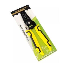 Alicate e Tesoura Descascador Decapador De Fios Elétricos Profissional 6,5 165 mm A borda da frente com dentes serrilhados para crimpagem de pequenos terminais e também evitar o deslocamento durante o corte. Formato do alicate tipo Tesoura facilita o corte e decapagem de fios de cobre, contem três furos de diâmetros diferentes para corte de fios de aço. Design de precisão com cabo anatômico para não ferir as mãos, e mola para evitar fadigas. Utilizado na montagem de componentes eletrônicos, manutenção elétrica, telecomunicações, uso residencial e profissional, etc. Cabo fabricado em borracha antideslizante para melhor agarre e controle do usuário. Para cortar e descascar fios de cobre e/ou aço se atentar que pequenos fios de aço só podem ser cortados na indicação COPPER ONLY .Atua como prensa de terminais elétricos também. Trava de Segurança para mante-lo fechado. CARACTERÍSTICAS Fabricado em Aço Carbono Comprimento: 165 mm 6,5 Diâmetro de Decapagem: 0,6-2,6 mm / 0.01-0.03 / 10-22 AWG Cor do Cabo: Azul e Amarelo a escolher no próprio anúncio Trava de Segurança: Sim Mola: Sim Cortador de Fios de Cobre: Sim Crimpador de Terminais: Sim Cortador de Fios de Aço: Sim Pacote: 01 Uma Peça Marca: I.D.E.A.+Pro