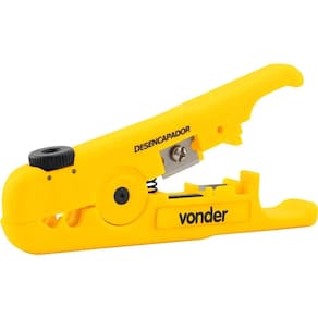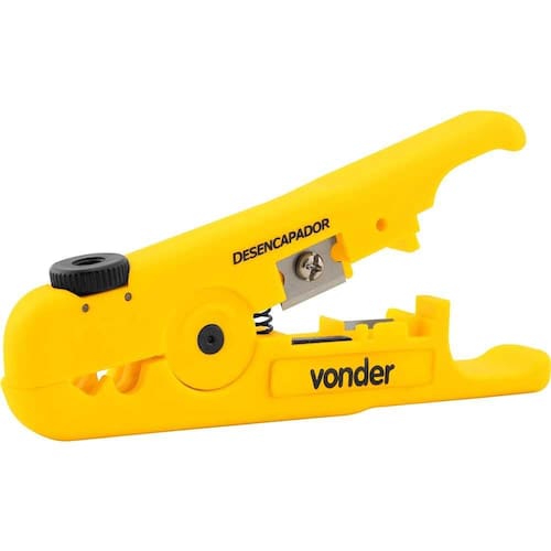 Material do corpo em plástico ABS, na cor amarela. Indicado para desencapar cabos par trançado UTP e STP, cabos coaxiais, cabos de áudio e cabos de rede.