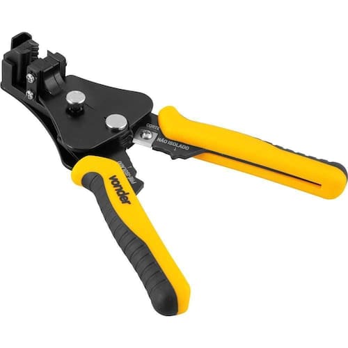 Cod. Do Fornecedor: 3686000180 Marca: Vonder Conteúdo da embalagem: 1 Alicate desencapador de fios automático AD180 Vonder Possui cabo com revestimento emborrachado, corpo metálico e guia de corte com limitador, além de possibilitar o desencape nas extremidades e no meio do fio. Indicado para desencapar, cortar e prensar fios de 1 mm, 1,5 mm, 2,5 mm, 4 mm, 6 mm e prensar terminais. legal: 90 dias Modelo: AD 180 Comprimento total: 180,0 mm Capacidade do alicate desencapador: 1 mm, 1,5 mm, 2,5 mm, 4 mm, 6 mm Material do corpo do alicate: Aço carbono Acabamento: Pintado Massa aproximada peso : 0,310 kg Marca: Não Informado