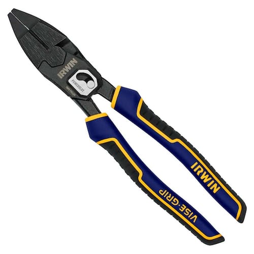 O Alicate Eletricista 9.5” de Alta Alavancagem IWHT84000 Irwin conta com empunhaduras bi-materiais com três camadas, garantindo maior conforto e controle na pegada, além de um puxador de fita guia para funcionalidade adicional.
