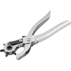 Conteúdo da embalagem 1 Alicate furador Aplicações e dicas de uso Indicado para furar couro, papel, papelão, plástico, cortiça, entre outros materiais Destaques e diferenciais Possui cabeça giratória, além de acabamento cromado que proporciona maior resistência à corrosão/oxidação