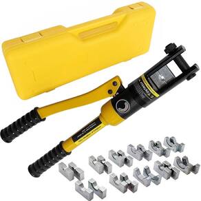 Alicate hidráulico 10 a 120mm prensa crimpa terminal 8 ton charbs Alicate hidráulico prensa crimpa terminais 10 a 120mm charbs. Acompanha 8 matrizes hexagonais: 10, 16, 25, 35, 50, 70, 95 e 120 mm. Com 8 toneladas máxima é exclusivamente para crimpagem de terminais em cabos de alumínio ou cobre. - marca: charbs - modelo: ch00276 - material: estrutura em aço carbono - cor: amarelo/preto - força máxima: 8 toneladas - curso máximo: 14mm - secção de cabo 10-120 mm - conjunto de 8 matrizes hexagonais mm 10, 16, 25, 35, 50, 70, 95 e 120 - alicate hidráulico com 8 toneladas máxima é exclusivamente para crimpagem de terminais em cabos de alumínio ou cobre - compatível com as especificações din, awg, jis, acompanha 8 matrizes para facilitar a operação e é ideal para manutenção em redes públicas, fabricantes e instaladores de painéis elétricos, instaladores de cabines elétricas e subtensões de energia, empreiteiros de montagem elétrica e industrial, departamento de manutenção de grandes indústrias - feito em de aço carbono de qualidade e com excelente acabamento, este alicate apresenta boa dureza e alta resistência - devido ao seu excelente design ergonômico, a alça é confortável para facilitar a pega. - tamanho da embalagem: 43x18x9cm - peso bruto: 4kg - : 90 dias Itens inclusos: - 1 alicate hidráulico - 8 matrizes: 10,16, 25, 35, 50, 70, 95 e 120 - 1 jogo de anéis de vedação - 1 maleta