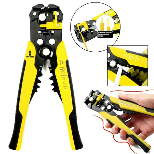 Alicate Lorben Decapador Crimpador Corta Fios e Cabos 8 Polegadas 5 em 1 Automático Profissional - Amarelo