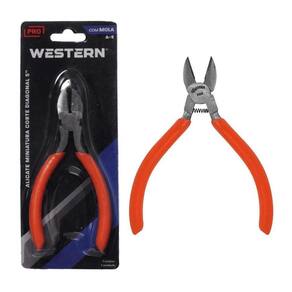 Descricao Um alicate de corte ideal para bijuterias, artesanato, reparos em aparelhos eletronicos, jardinagem e pescaria, entre outros. Forjado em aco carbono.Oferecemos alicates de qualidade que nao podem com toda certeza faltar no seu jogo!- (PRO)- Com mola- Para trabalhos de precisao.- Ideal para: Artesanato Bijuterias Reparos em aparelhos eletronicos Jardinagem Pescaria- CUIDADOS: Nao utilize em aparelhos energizado. Ferramenta nao isolada. Para reduzir o riscos de lesoes, use adequadamente equipamento de protecao individual (oculos de protecao, botas, mascara, luvas, etc...) Necessario ao trabalho. Use a ferramenta correta para sua aplicacao. Nao force a ferramenta. A ferramenta correta fara o trabalho melhor e mais se utilizada para aquilo que foi projetada. A ferramenta correta fara o trabalho melhor e mais se utilizada para aquilo que foi projetada. Armazene em seco e fresco, longe de umidade. Guarde em .- Caracteristicas: ALICATE MINIATURA CORTE DIAGONAL, PARA AJUSTE OU CORTE COM PRECISAO.*Imagens meramente ilustrativas.Especificacao Tecnica - Dimensoes da Peca: 11,3 x 9,5 x 1cm- Dimensoes da Embalagem: 8,5 x 1,5 x 18,5cm- Quantidade Inner: 30 Pecas- Dimensoes Inner: 35 x 20 x 9cm- Quantidade Master: 120 Pecas- Dimensoes Master: 40,5 x 36 x 37,5cm- Material: Aco Carbono, PVC- Cor do cabo: Laranja, AzulObservacao:Este item e comercializado em cores : Azul, Mix de cor e variavel e na voce pode receber 1 ou 2 cores.- Tipo de Embalagem: Blister- Marca: Western