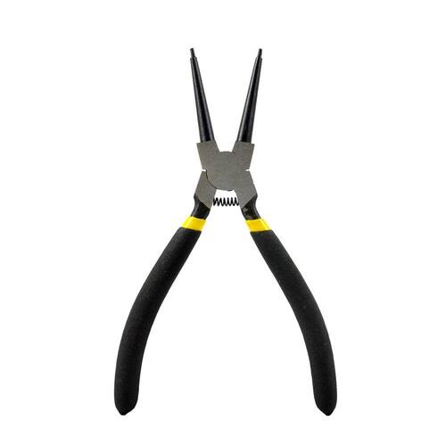 Alicate para anéis interno 7?, parecidos com alicates de bico meia cana, possuem em suas extremidades duas pontas bem finas para encaixar no olhal dos anéis de retenção. Possui bico reto para melhor chegar ao local onde se encontram os anéis.