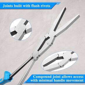 ?Alicate plano de junta dupla??ESPECIFICAÇÃO?Material: aço carbono; Cabo: TPR ; Tratamento de superfície: acabamento polido; DIMENSÃO: 342 x 56 x 19 mm / 13,46 x 2,20 x 0,75 ". ; ?CUIDADO? 1. Mantenha fora do alcance de crianças. 2. Inspecione antes de cada uso. Não use se estiver danificado. 3. Um pouco de óleo na superfície para manter as chaves livres de ferrugem, não afetará o desempenho, basta limpá-la com um pano ou toalha velha. - ?APLICAÇÃO?Ações de puxar, segurar, alisar e dobrar em espaços confinados e difíceis de alcançar. - ?DESIGN?Este produto tem designs de juntas compostas que permitem acesso com o mínimo de movimento da alça, tornando o comprimento total de 33 cm para trabalhar (agarrar, puxar...) em áreas confinadas profundas. O comprimento estendido de 33 cm permite que você navegue sem esforço em torno de obstáculos e alcance espaços apertados. - ?MATERIAL?Feito de aço de alto carbono e foi tratado termicamente para melhorar a resistência e durabilidade. A superfície foi polida. As alças bicolores ergonomicamente projetadas para aderência antiderrapante e confortável. - ?DIMENSÃO? 342 x 56 x 19 mm / 13,46 x 2,20 x 0,75 ". - ?Óleo antiferrugem? O óleo antiferrugem pode aparecer no alicate, pode proteger o alicate de ferrugem. Não são produtos sujos ou utilizados, você pode limpá-lo com uma toalha e isso não afetará a função.