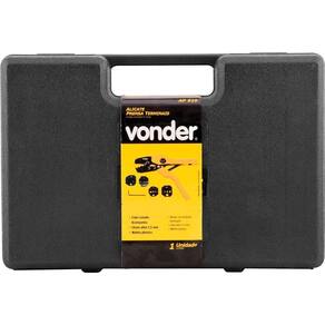 Possui regulador de pressão que libera o terminal após atingir a pressão pré-estabelecida e acompanha 5 mordentes, possibilitando uma série de trabalhos com medidas diferentes