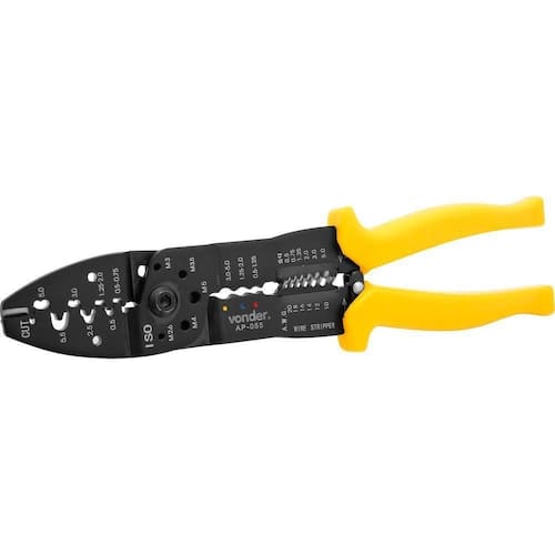 Indicado para prensar terminais pré-isolados fêmea, macho, forquilha (garfo), anel e pino, não isolados anel e forquilha (garfo), para cortar fios e cabos de 0,5 mm a 5,5 mm e parafusos M2,6 - M3,5 - M4 e M5, além de desencapar fios e cabos de 0,5 mm a 5,0 mm