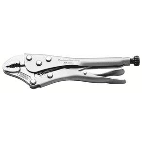 Alicate Pressao Curvo 10" 44014/110 Tramontina Mordentes forjados em aço cromo vanádio. Corpo formado por chapas conformadas. Acabamento cromado. Abertura regulável. Possui alavanca para destravar. Possui mordentes com perfil curvo. Os alicates de corte são testados quanto à resistência ao desgaste do gume de corte em máquina de ensaio específica. Os alicates possuem dureza diferenciada no gume de corte e no corpo. Segurar, puxar e prender peças firmemente. Em trabalhos leves pode ser usado como uma prensa. As ferramentas são produzidas e testadas conforme normas específicas. Prende, trava e não solta! Esta é a principal característica do alicate de pressão da Tramontina PRO que auxilia na fixação de peças que serão cortadas, lixadas ou soldadas, por exemplo. A ferramenta certa para você que precisa de resistência e segurança. Garantia total contra vícios ou defeitos de fabricação.