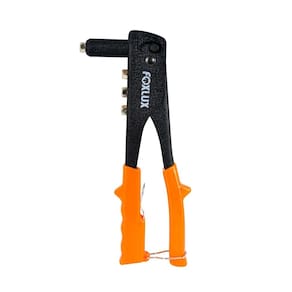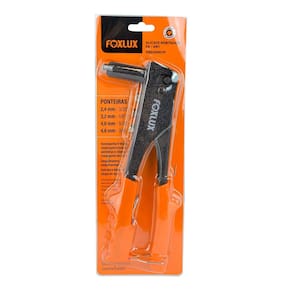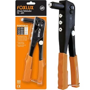 Com o Alicate Rebitador Foxlux você consegue unir, de maneira segura e prática, componentes e chapas dos mais variados materiais por meio de rebites de alumínio ou aço. Ferramenta reforçada com estrutura em aço e empunhadura emborrachada. Possui eficiente sistema de molas para facilitar o uso, acompanha clipe para travamento e chave para troca de ponteiras. Além disso, permite a aplicação de ponteiras para 4 modelos diferentes de rebites.