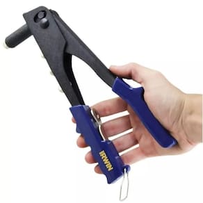 ferramenta articulada que serve fundamentalmente para unir dois ou mais materiais através de rebites de repuxo de forma segura e eficaz. - rebitador com o corpo em aço de alta performance com espessura de 2,0 milímetros e castanhas internas em aço cromo molibdênio; - possui cabo emborrachado e antideslizante para maior conforto e segurança durante o uso; - mais utilizado para pequenos reparos e fixação para os usuários da construção e profissionais da mecânica; - aplicação exclusiva em rebites de alumínio; - tamanho: 10. 5" polegadas. Acompanha 4 bicos para diferentes tamanhos de rebites e chave para troca: - 2,4 mm 3/32 - 3,2 mm 1/8 - 4,0 mm 5/32 - 4,8 mm 3/16