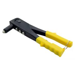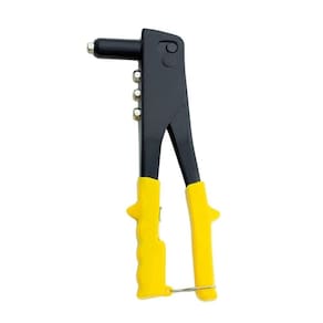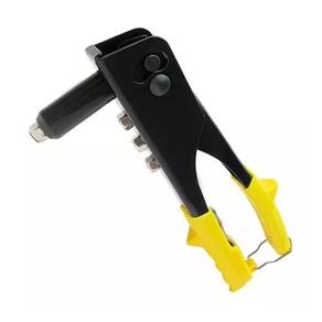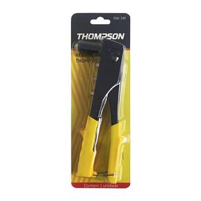 Características Principais: Cor: Preto/Amarelo Marca: Thompson Material cabo: Emborrachado Material: Aço Função: Utilizado para aplicar rebites em chapas ou peças metálicas, garantindo uma união firme e duradoura entre os materiais. Compatível com 4 tamanhos de bicos: 2,4 mm, 3,2 mm, 4,0 mm e 4,8 mm. Sistema de troca rápida de bicos: Facilita a substituição dos bicos para diferentes tipos de rebites. Design ergonômico: Proporciona maior conforto e facilidade no manuseio, aplicando força de forma uniforme.