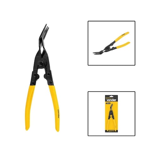 Especificações: - Marca: Vonder; - Modelo: 6510023240; - Material: Aço Carbono; - Design Ergonômico e Cabo Emborrachado; - Comprimento: 240mm; - Capacidade: Grampos de no máximo 12 mm; - Aplicação: Indicado para sacar os grampos de fixação de forros de portas e acabamentos internos de veículos;