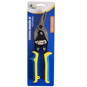 - Marca: Guepar - Referência: 861-00571 - Tipo de Corte: Esquerdo - Tamanho: 10 250mm - Linha profissional - Corpo em aço cromo vanádio - Cabo plástico emborrachado e ergonômico - Indicada para cortes retos em chapas em geral. Pode ser utilizada para cortar alumínio, cobre, vinil, papelão, couro, entre outros. - Superfície afiada e áspera que previne o escorregamento da peça ao mesmo tempo em que facilita o corte - Conformidade / Padrão: Ansi B107.11M - Peso bruto: 450 gramas - Garantia: 90 dias Ean: 7908533600571