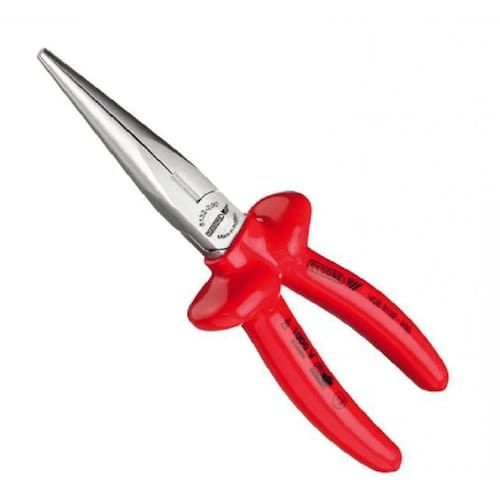 Alicate Tipo Telefone Bico Reto Gedore VDE 8132-160 Alicate de bico longo e ponta oval, fabricado com tratamento térmico especial e corte temperado por indução. Indicado para cortar arame duro. Diâmetro: 160mm Polegadas: 6.1/2 Código do fabricante: 091.843