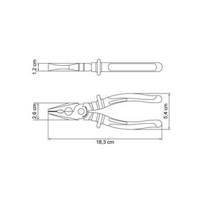 Corpo em aço carbono especial forjado e temperado. Acabamento fosfatizado. Cabeça e articulação lixadas. Têmpera especial no gume de corte. Isolação elétrica de 1.000 V C.A. Suporte plástico. Tamanho: 7