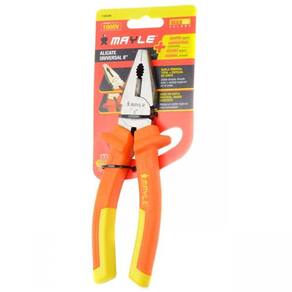 Alicate universal isolado de 8? é parte indispensável de qualquer caixa de ferramenta. A sua ponta chata e mordida estriada serve para apertar e dobra chapas, fios. No meio há uma abertura circular, também estriada própria para pegar parafusos com firmeza e por fim, existe uma lâmina de corte para cortar arame e fios, finos e médios. Seu cabo é feito com duplo material, com maior ergonomia e isolamento de 1000V de acordo com a norma ABNT NBR 9699 e NR 10. Possui abas protetoras para dar mais segurança no seu manuseio.