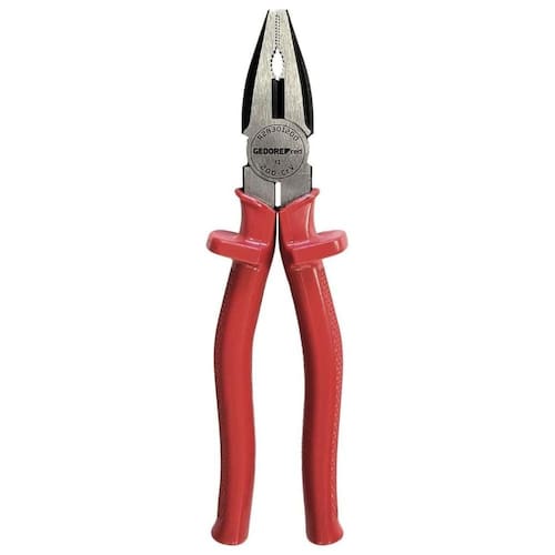 O Alicate Universal Gedore Red é uma ferramenta fabricada em aço cromo-vanádio, com bicos lixados que garantem cortes precisos e um acabamento fosfatizado para maior resistência à oxidação. Com aplicação especial de óleo, o alicate oferece proteção adicional contra a corrosão, enquanto seus cabos com proteção extra evitam o contato direto com o metal, maximizando o conforto e a segurança. O cabo ergonômico é isolado até 1.000 V em corrente alternada e testado conforme a norma NBR 9699, ideal para cortar fios, cabos e arames de diversos materiais, como cobre, alumínio, latão, bronze, plástico e aço de até 2,0 mm de diâmetro.