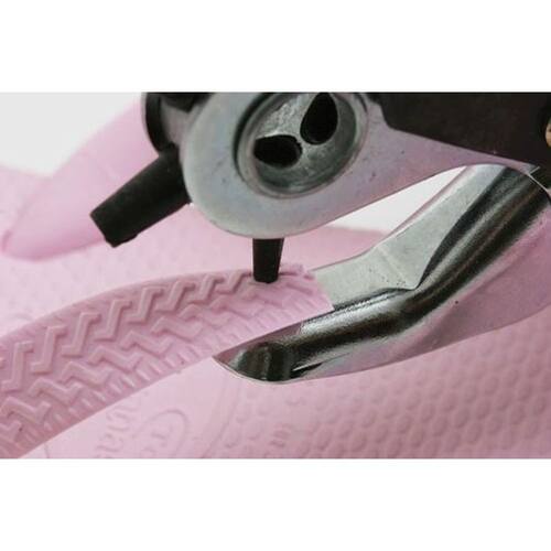 Alicate vazador para aplicação de ilhozes e adornos em geral Utilizado também em couro, como sapatos e bolsas. 6 pontas com tamanhos varidados para furo. 3/3,5/4/4,5/5/5,5 mm Ean: 7895315002336