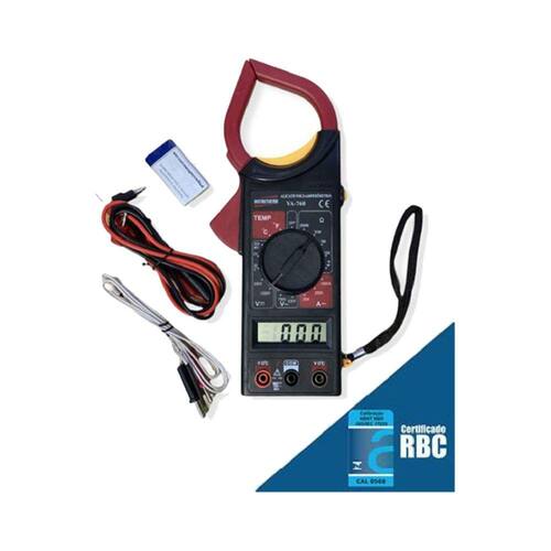Alicate Volt Amperímetro Digital Tensão Continuidade Corrente Resistência Temperatura Va-760 Portátil Certificado Rbc