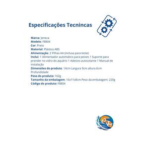 Inclui: 1 Alimentador automático para peixes 1 Suporte para prender no vidro do aquário 1 Adesivo autocolante 1 Manual de instalação