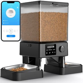 Sua gatinha te acorda às 4:00 da manhã quando ela quer comer? Você ainda se preocupa com o jantar do seu gato quando faz horas extras? Os comedouros automáticos para gatos são considerados um dos investimentos mais valiosos para donos de animais. Se você planeja comprar um, este é o que você precisa. Aqui estão os destaques do comedouro automático para gatos oneisall : 1. Programa fácil, fácil de usar. 2. O grande tanque de alimentos transparente contém mais alimentos. 3. Até 6 refeições por dia. Uso mais flexível. 4. A tigela de aço inoxidável pode ser lavada na máquina de lavar louça . 5. Para gatos e cachorros em ambientes fechados . - ??📱 Conexão Wi-Fi estável 5G. O dispensador automático de comida para gatos oneisall pode se conectar a Wi-Fi 5G/2,4G. Comparado ao Wi-Fi 2.4G, esse alimentador com recurso 5G se conectaria à rede de forma mais estável. Você não precisa se preocupar em deixar de controlar quando estiver fora de casa. - ??😺 Alimente seus animais de estimação em qualquer lugar a qualquer hora. Você pode alimentar seus animais de estimação por meio de um plano programado ou alimentação manual em qualquer lugar e a qualquer hora. Você também pode ver o registro de alimentação em seu celular IOS ou Android. - ??👨?👩?👧 Compartilhe o aplicativo com suas famílias. Você também pode compartilhar o aplicativo com suas famílias para alimentar e monitorar a alimentação de seus animais de estimação juntos. - ??🌞 Capacidade de 5 L/20 xícaras - Um tanque cheio de ração seca permite que 2 gatos adultos comam por 10 dias ou 6 dias para 2 filhotes. O comedouro oneisall para gatos ajudaria a alimentar bem seus bebês peludos quando você saísse de férias. - ??🎙? Gravador de voz de 10s -Você pode gravar uma mensagem de chamada de 10s. O alimentador reproduzia o áudio antes de cada refeição. Para que seus filhotes saibam que você os ama o tempo todo, você pode gravar uma mensagem de chamada e deixá-los ouvir sua voz na hora da refeição. - ???? 1 porção ˜ 10 gramas ˜ 1/12 xícara. Tamanho de ração permitido inferior a 0,5 polegada. A porção significa a quantidade de ração de cada tigela. E esse comedouro para gatos entregaria a mesma quantidade de comida em cada tigela. 100% justo para cada adorável animal de estimação.