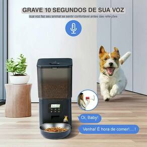 Características: - qualidade, bem estar, durabilidade e confiança; - seu pet mais saudável com porções bem distribuídas ; - tranquilidade em saber que o seu animal está recebendo seu alimento, na hora certa; - botão com proteção se o seu animal tocar o botão não mudará a programação ; - gravação: a função permite que você grave sua voz ou algum som para que seja emitido antes da refeição do seu animal. Você pode gravar 10 segundos; - cada porção tem cerca de 5 gramas. Você pode definir o tamanho da refeição para 1-40 porções ou seja, entre 5 gramas e 200 gramas , conforme as necessidades do porte do seu animal de estimação; - a bandeja de aço inoxidável higiênica e fácil de limpar ; - tanque de alimentos removível e fácil de limpar; - base é estável e antiderrapante.