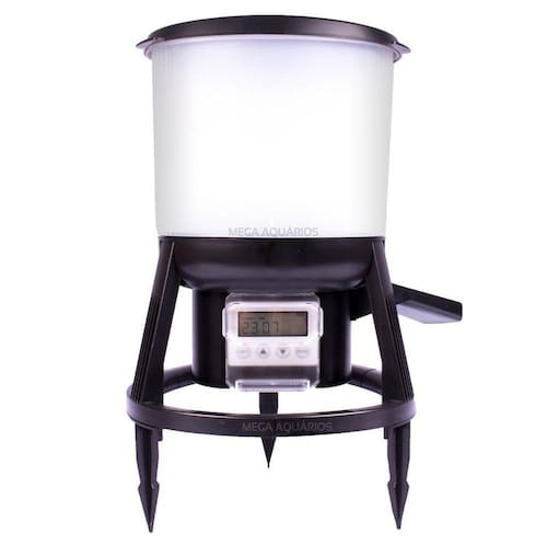 O alimentador automático Grech é perfeito para quem tem um lago e não consegue oferecer alimento regularmente, ele permite realizar até 6 alimentações diárias, ele é super prático e fácil de programar. Cada carga de bateria dura aproximadamente 3 meses.