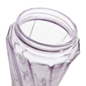 - Lindo design: vidro e base de cor roxa adicionam um toque de elegância a qualquer quintal