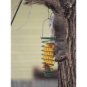 - Adicione ou remova o milho inclinando o comedouro em forma de mola para o lado - Pendura no galho ou na cerca da árvore - Também aceita frutas ou material de nidificação